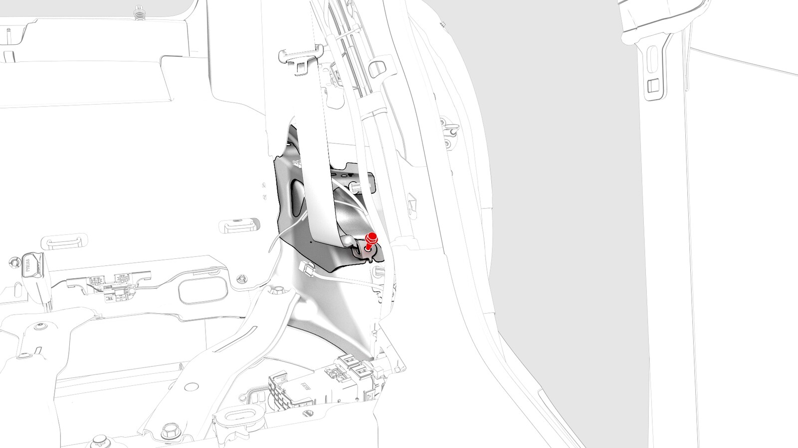 - Remove the LH 2nd row seat side bolster. See Bolster - Side - Seat - 2nd Row - LH (Remove and Replace).