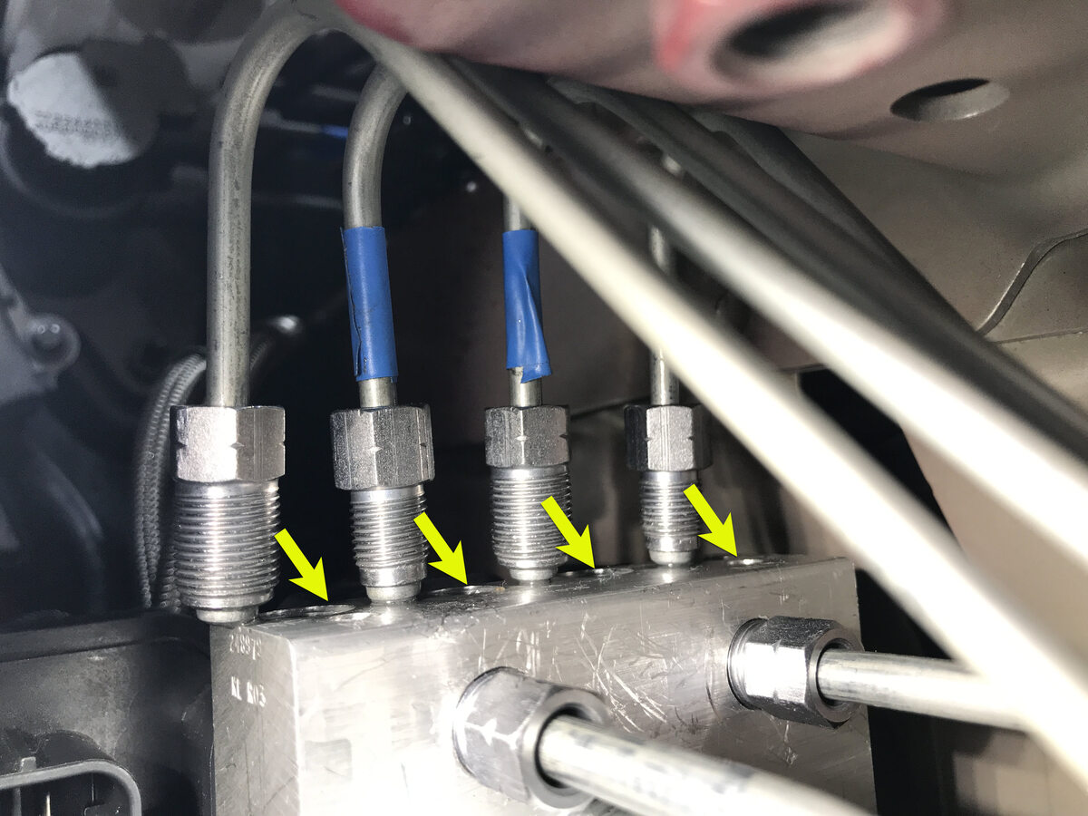 hydraulic control unit brake line orifices.
