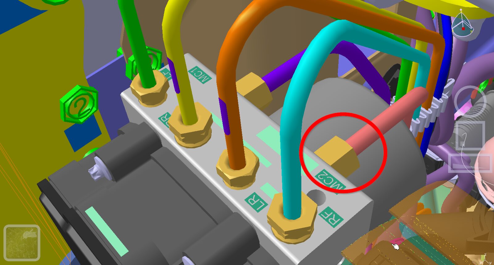 rear brake line to the hydraulic control unit