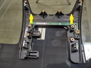 Use a heat gun on the outside of the windshield to release heat the adhesive as shown, and then gently pry the board away from the bracket as heat is applied to remove the sensor from the bracket.