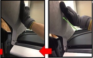 Note1 tab, 12x clips, Position side panel and align the front tab. Push the console panel from the front towards the rear