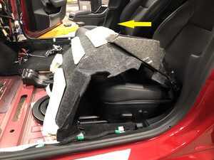 Remove RH console side panel carpet