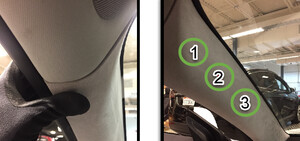 Note3x clips, Pull inside of the upper portion of upper A-pillar, Remove 3x tether hooks by twisting and pulling away from housing, Then pull upper A-pillar upward to remove