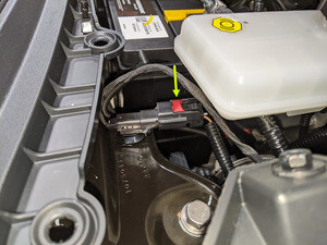 Secure harness clip onto LH side of washer tank inlet