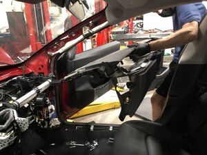 Remove LH mid A-pillar assembly