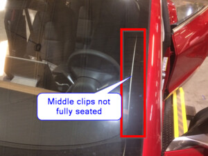 Note1x clip, 1x tab, Align the bottom tab then push the top clip to fully seat mid A-pillar, Make sure the seal seat on top of the trim