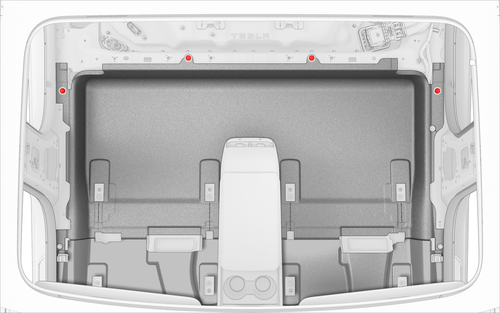 Remove clips (X4) and release Velcro that secure the rear main cabin carpet to