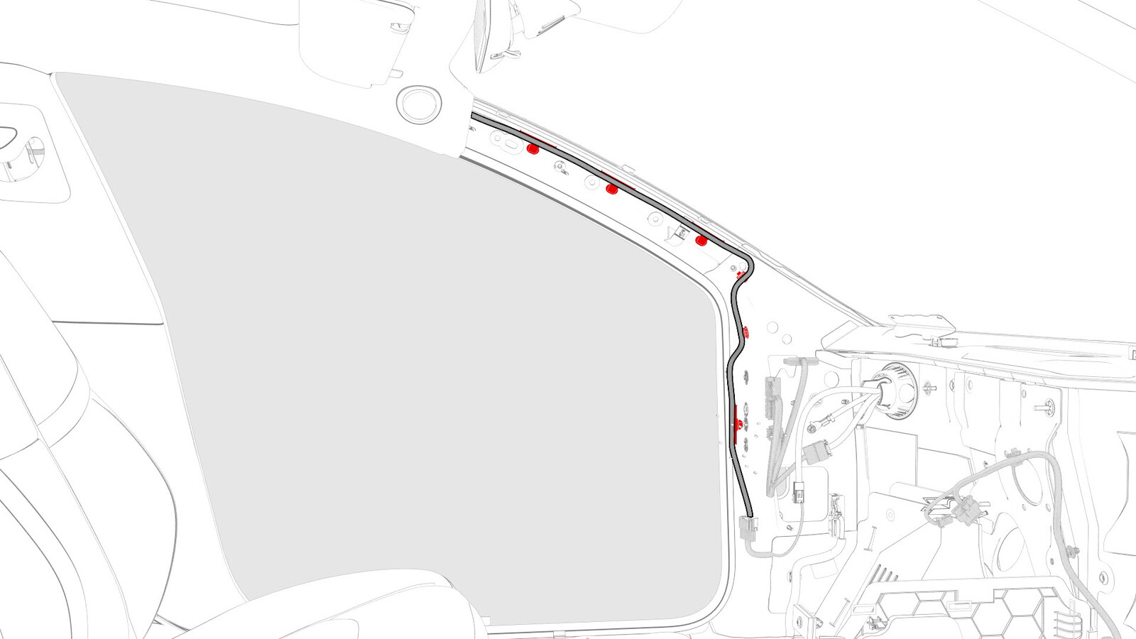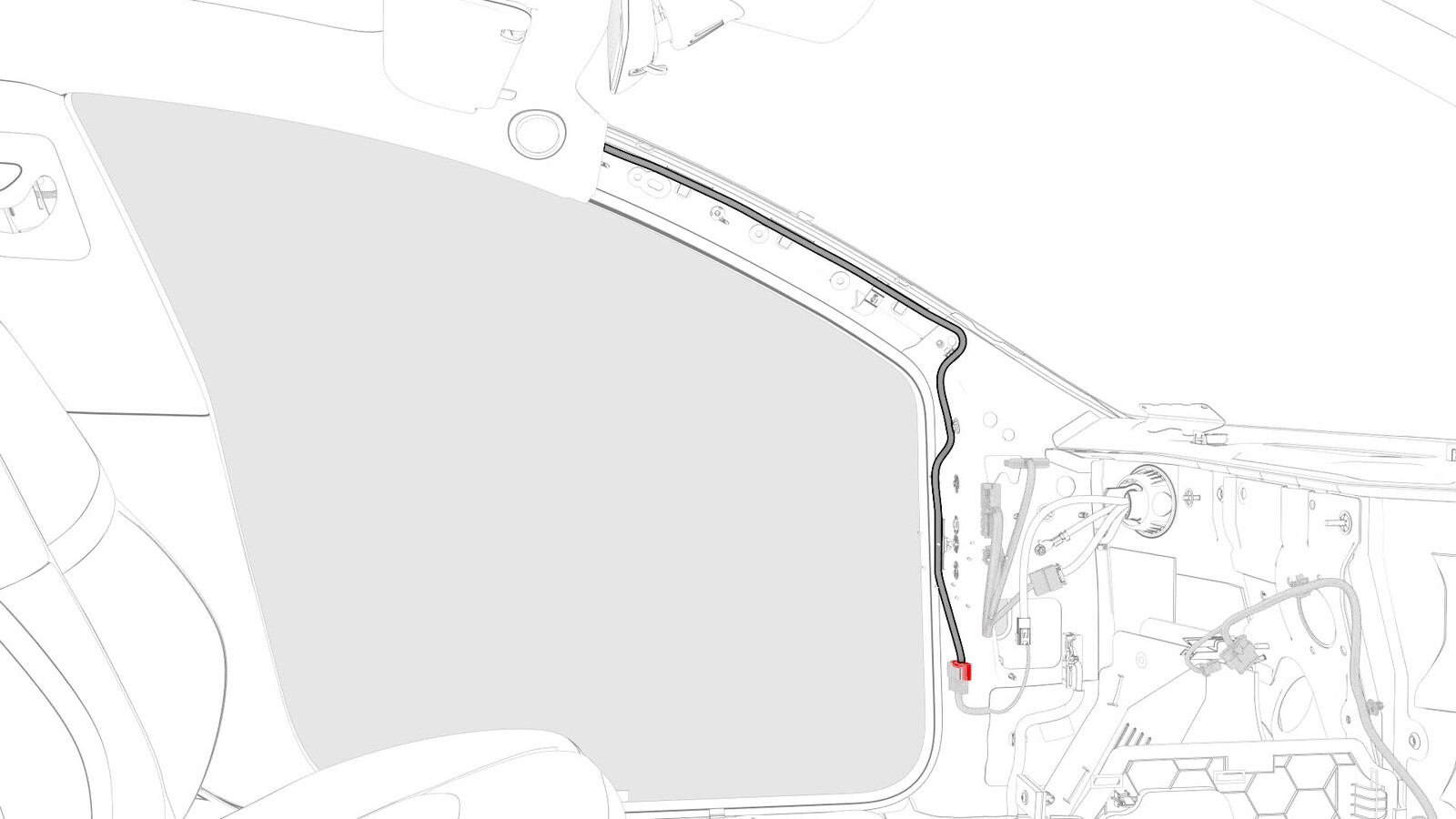 the headliner electrical harness to the LH A-pillar area.