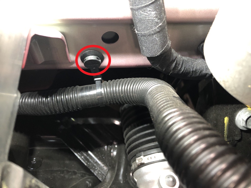 bolts (x2) that attach the cooling fan module assembly to the front end