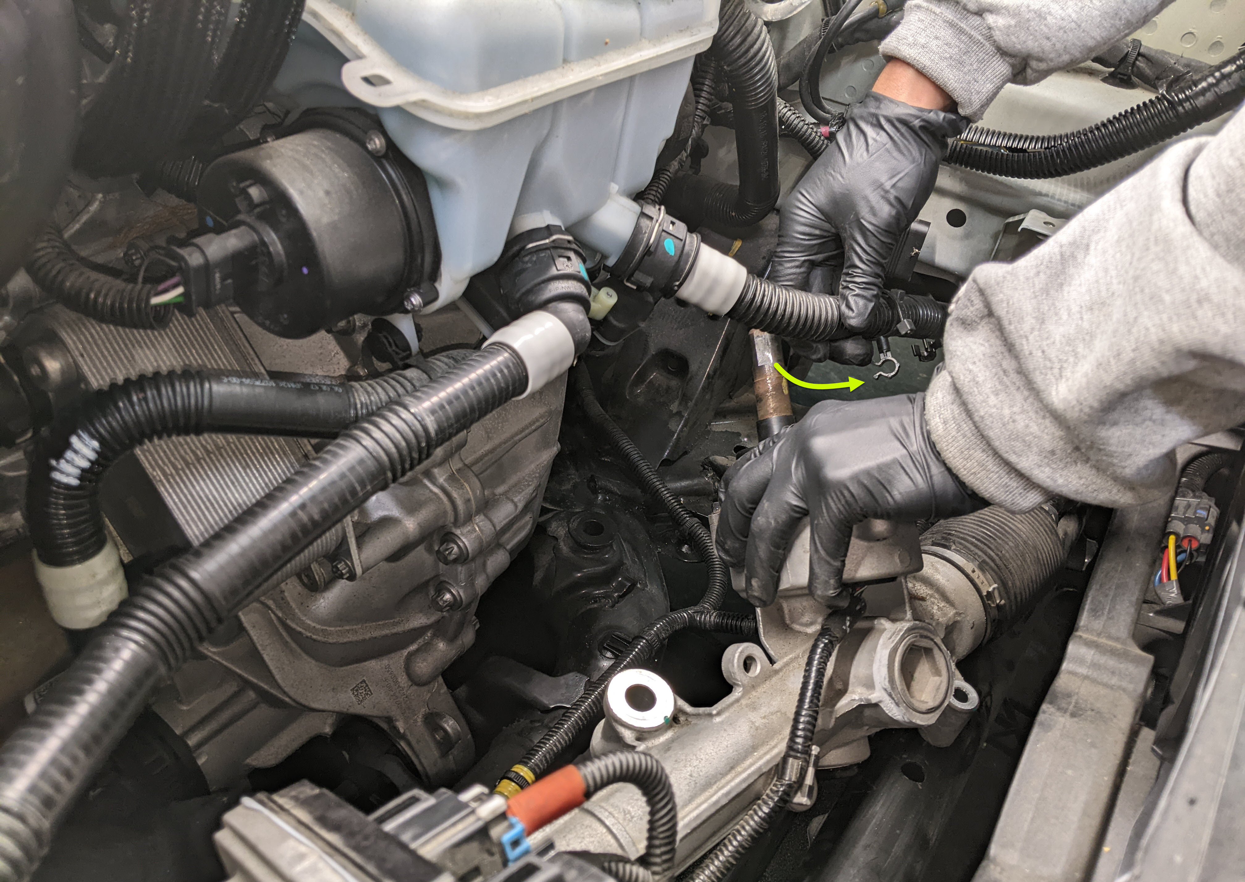 Secure the clips (x2) that attach the radiator outlet hose to the RH side