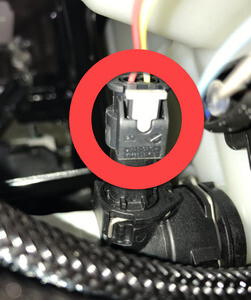 the Superbottle to powertrain coolant supply hose temperature sensor connector.
