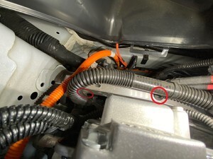 front wheel arch liner away from the HV battery and expose the coolant hoses.