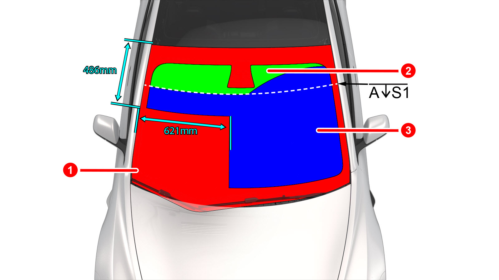 Repairs allowed in area 1: None; if the roof glass is damaged in this area, it must be replaced. |