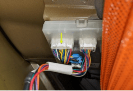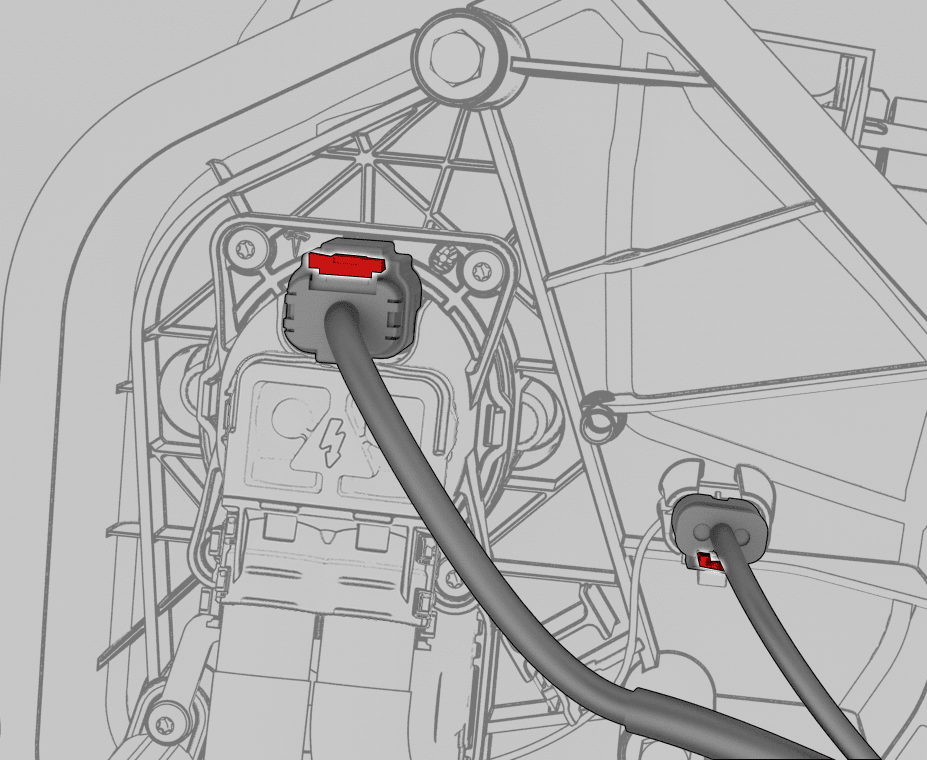 CAUTIONDO NOT push down on the red locking tab. Pull the tab away from the connector until the connector is unlocked, and then continue pulling the main body of the connector to fully disconnect it.TIpGently lift the black connector tab in order to remove the white locking tab from the 12-pin low voltage connector.