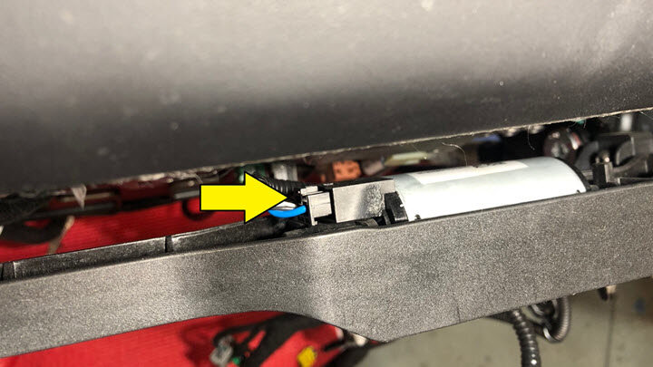 NotePry up on the bridge tack motor tab, and then slide the seat track bridge assembly away to release it.
