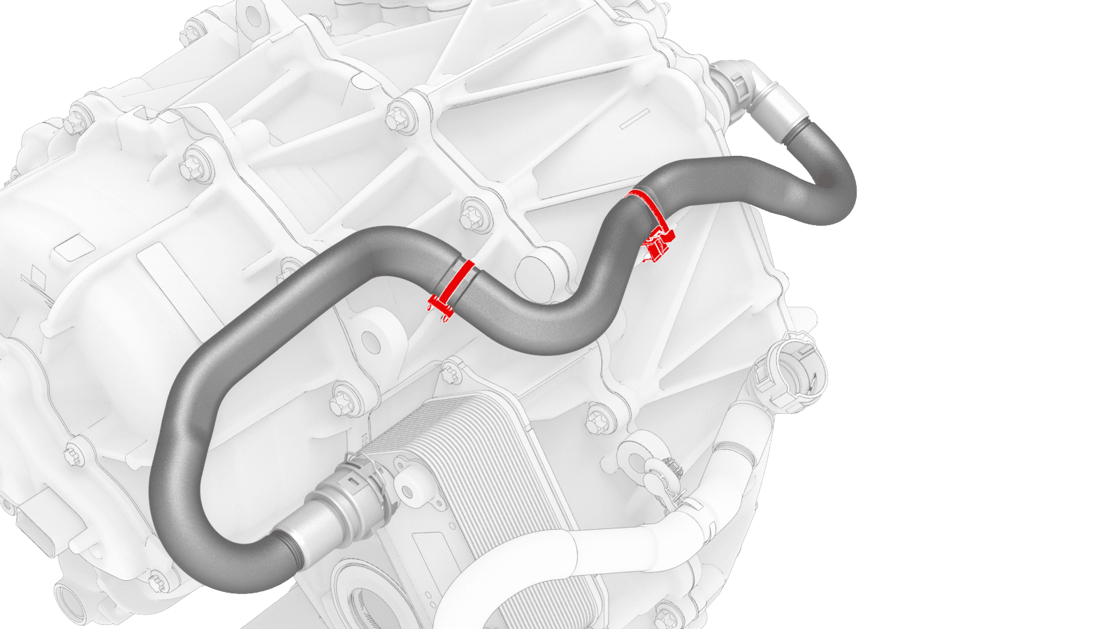 attach the front drive unit inverter-heat exchanger hose to the exterior of