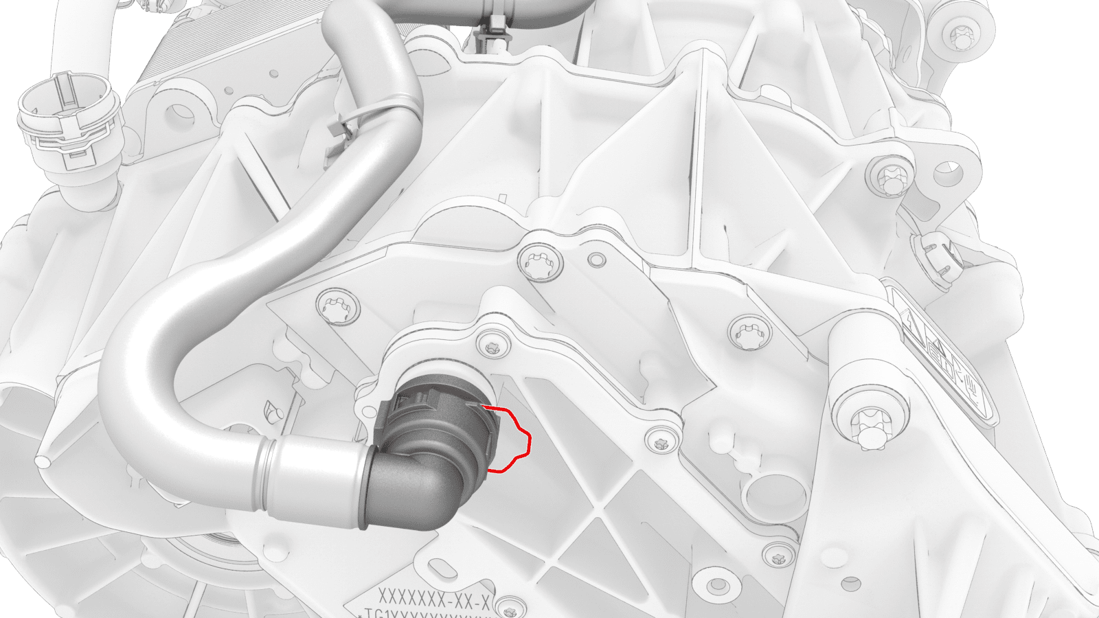 the front drive unit upper inverter coolant coupling.