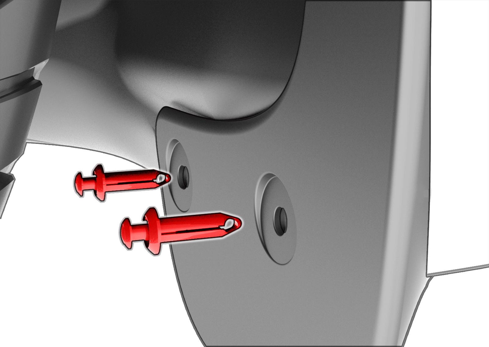 2nd generation kits:Align the holes in the mud flap/splash guard to the holes in the front wheel arch liner, and then insert the opened (plastic rivet pulled out) push clips into the holes. Once the push clips are fully inserted, push the plastic rivets in to close the push clips and lock the mud flap/splash guard in place.