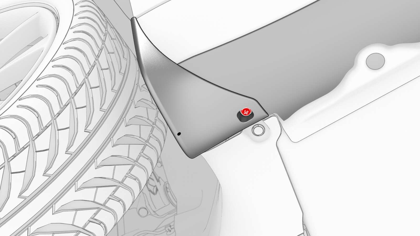 - Ensure the mud flap is aligned with the body. Make adjustments as necessary.
