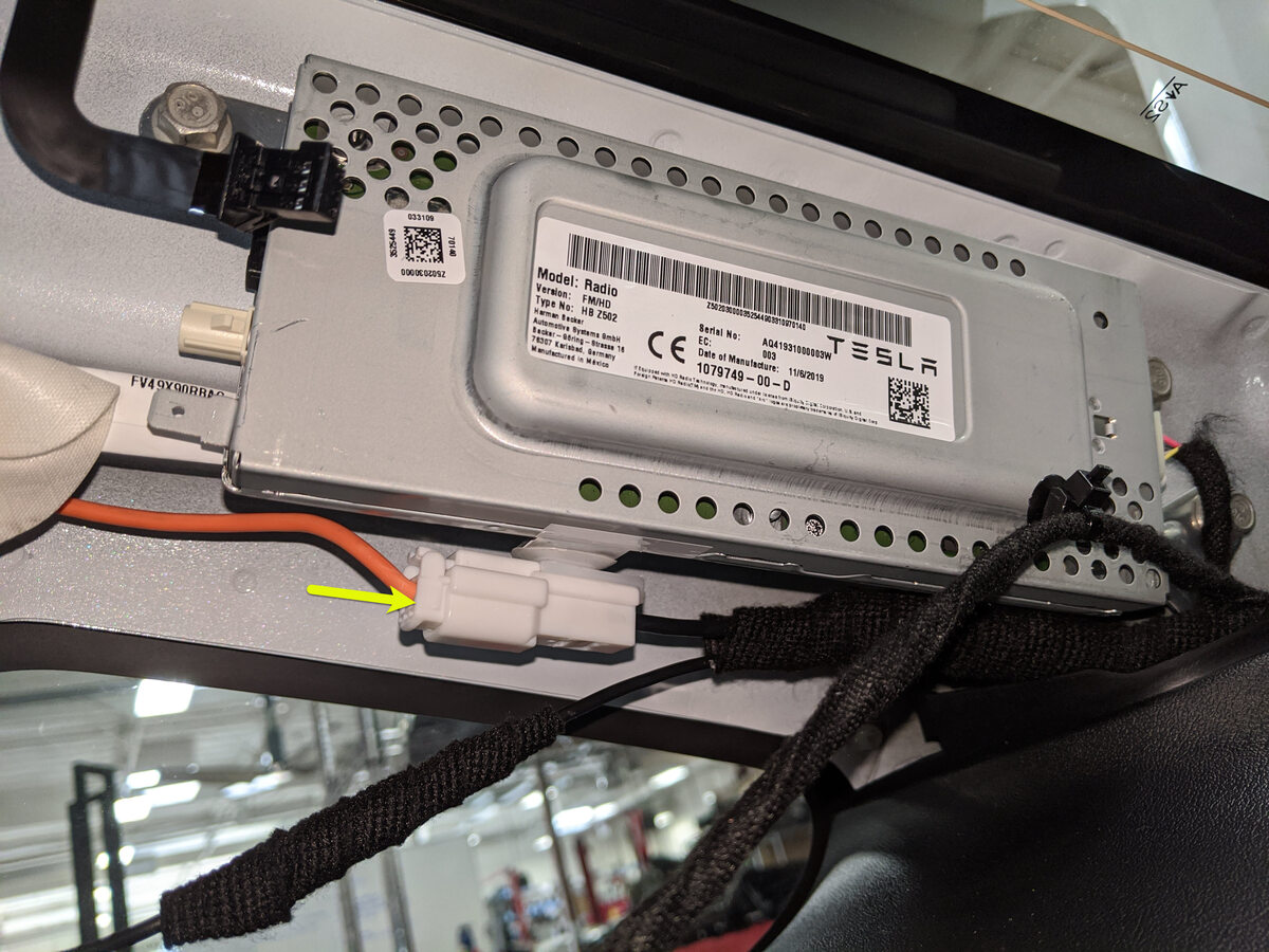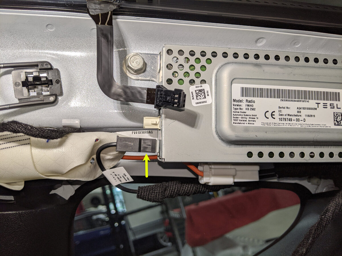 Connect the RH antenna filter harness connector to the tuner.