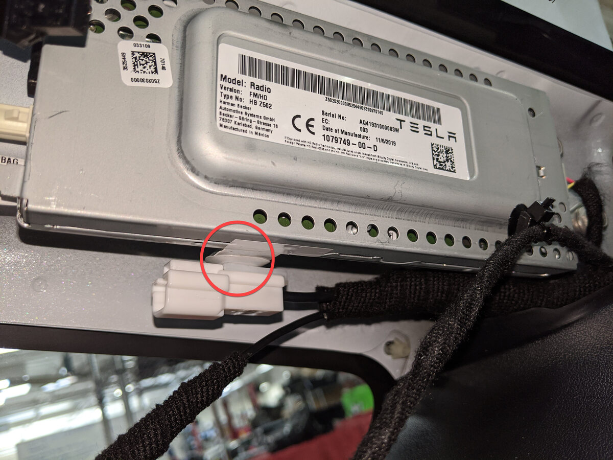 Disconnect the RH antenna filter harness connector from the tuner.