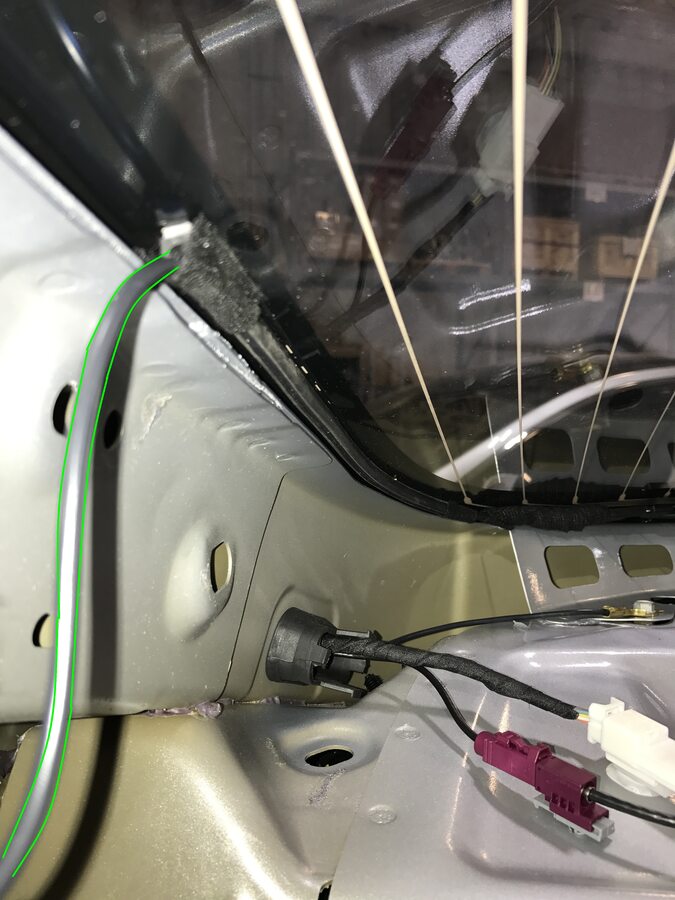 Install the RH antenna filter harness on the backlight glass.