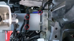 Install the clips (x3) that attach the front harness to the LH crush can.