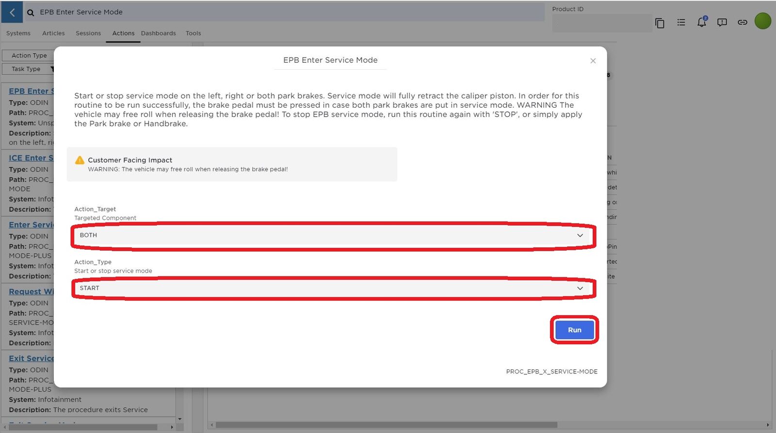 NoteSelect ‘Actions’ tab and search for 'EPB Enter Service Mode', Select PROC_EPB_X_SERVICE-MODEvia Toolbox: (link)via Service Mode: