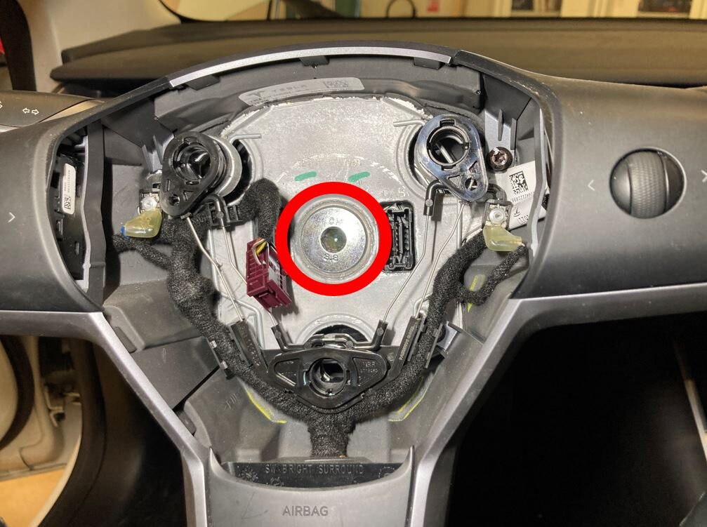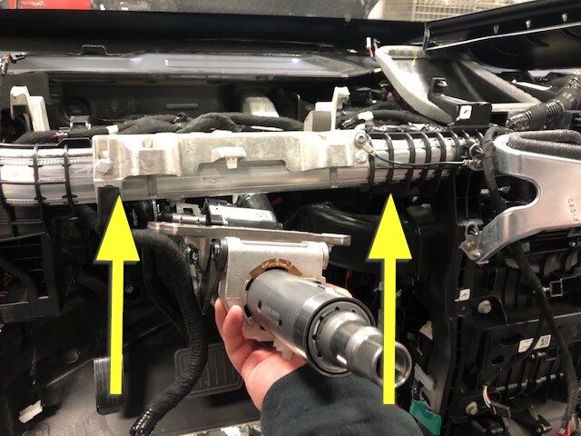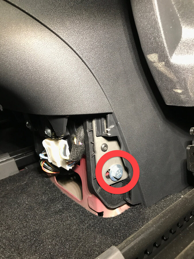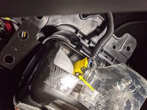 Install connectors to LH footwell cover and position for installation, securing front tabs to driver air bag assembly