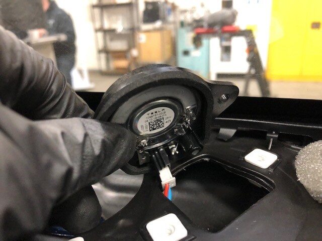 Note3x clips, 1x tether, Slide bottom of trim along IP and speaker grill, attach tether to body side, Set clips starting at the bottom and work up, Pull seal over trim