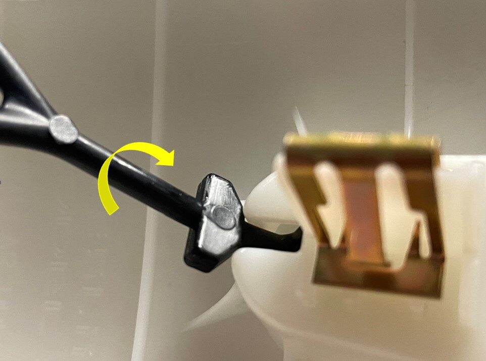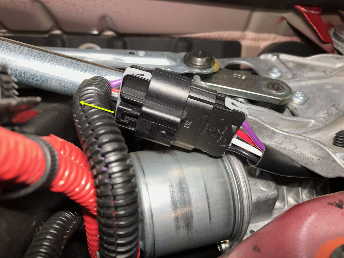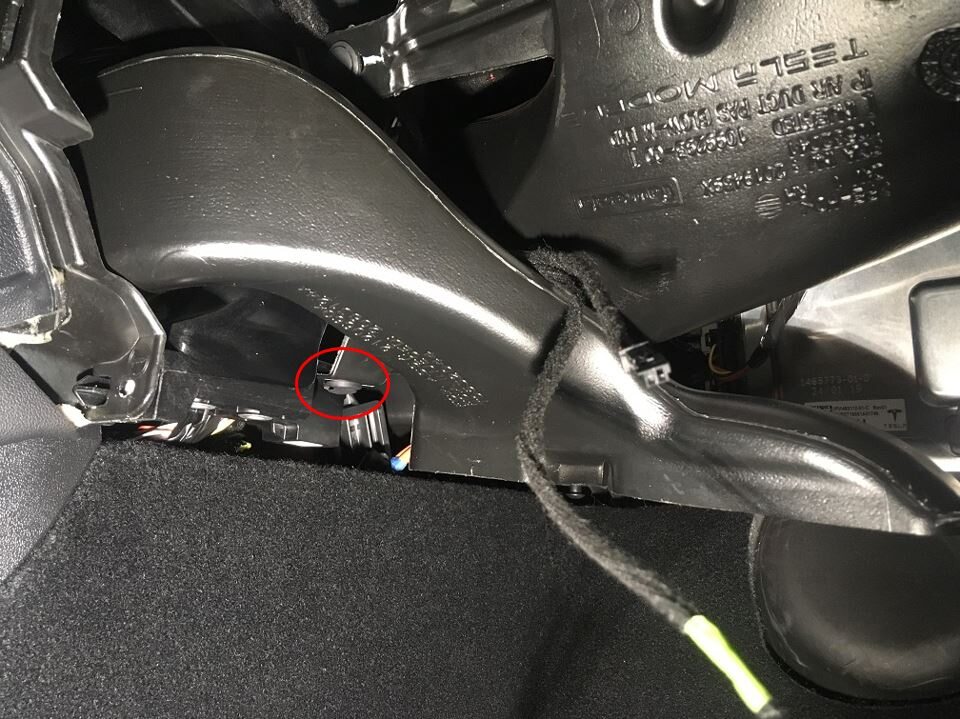 Note4x clips, 1x connector, Frunk safety switch, 3x guide tabs, Align 3x tabs then push downward to secure clips