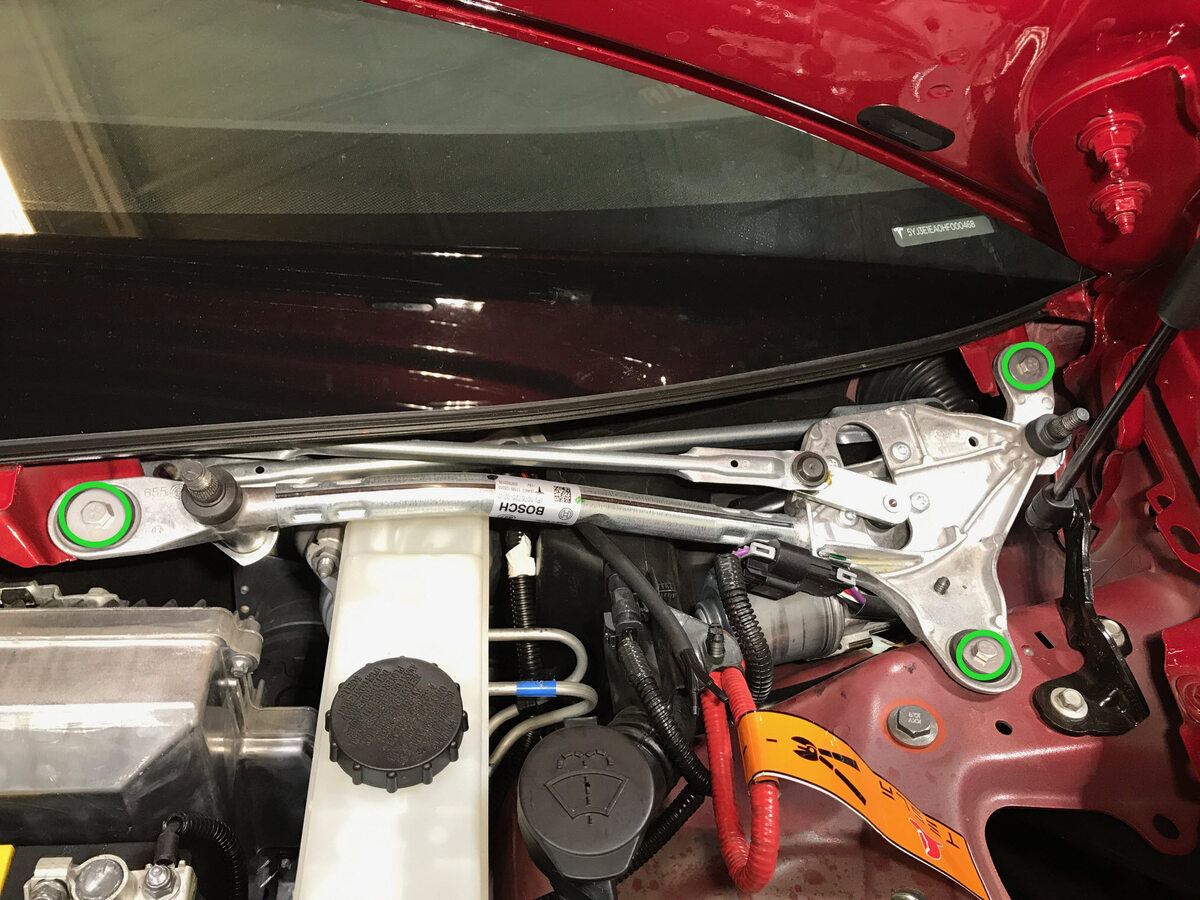 Note7x bolts, 10mm, 5 Nm, Lift up RBN covers to access upper fasteners, Newer vehicles may not be equipped with covers