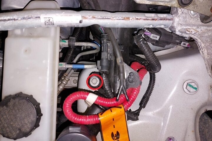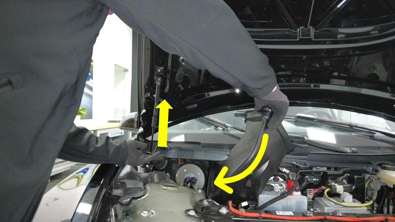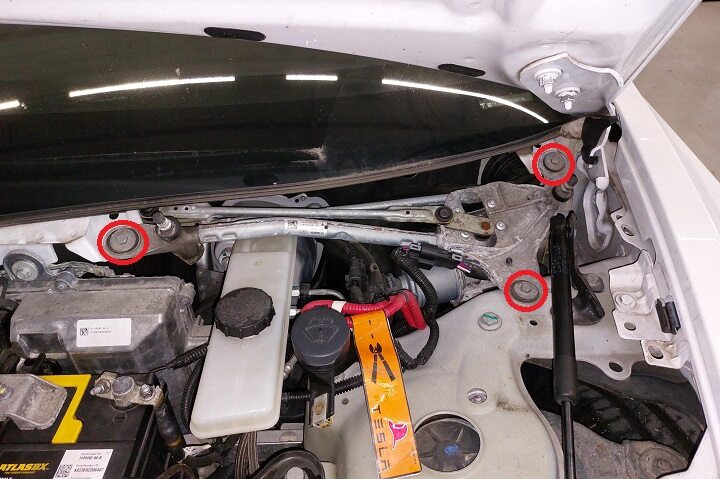 Remove bolts securing frunk assembly
