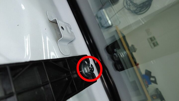 Connect washer hose from RH wiper arm