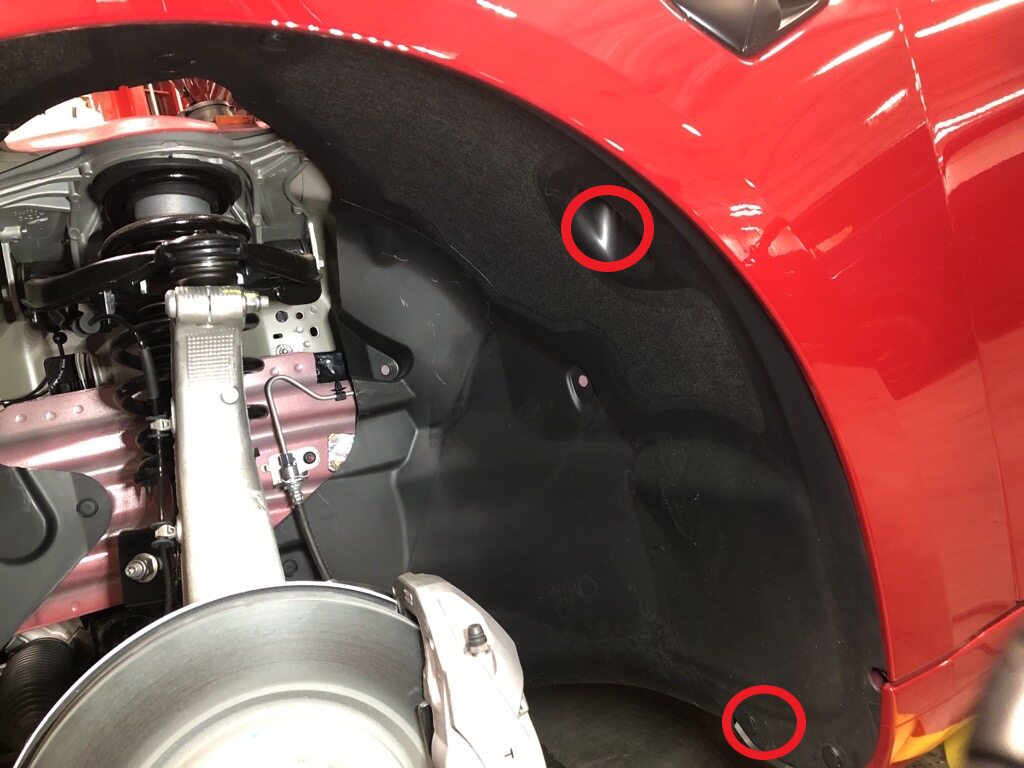 Note2x clips, Partially install LH front wheel liner, Wheel liner will be removed again later, Install 2 clips to secure LH front wheel liner