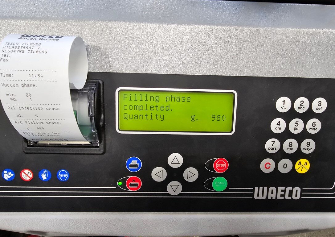NoteNote or print the amount of refrigerant and oil recovered, If drained oil level increased more than 1.01 oz (30 mL) refer to drained oil loss chart https://toolbox.teslamotors.com/articles/353700