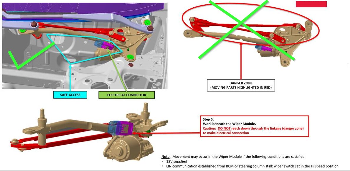 Note1x connector, Do NOT place limbs within the linkage movement area as wiper arms will automatically transition to parking mode