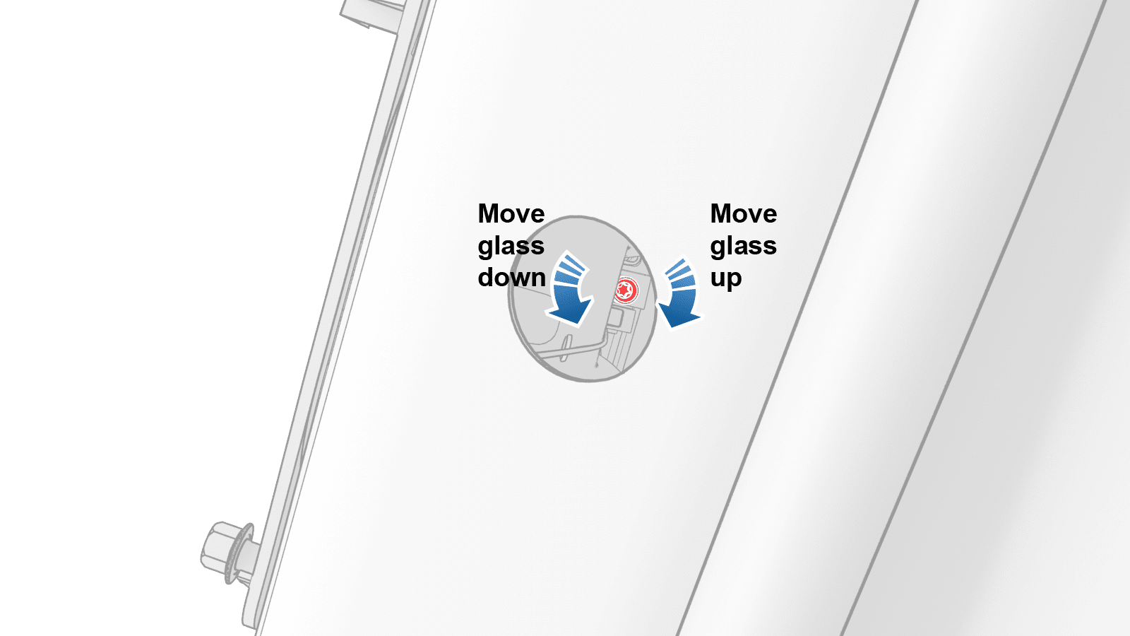 - Adjust the window glass position, and then hand tighten the bolts.