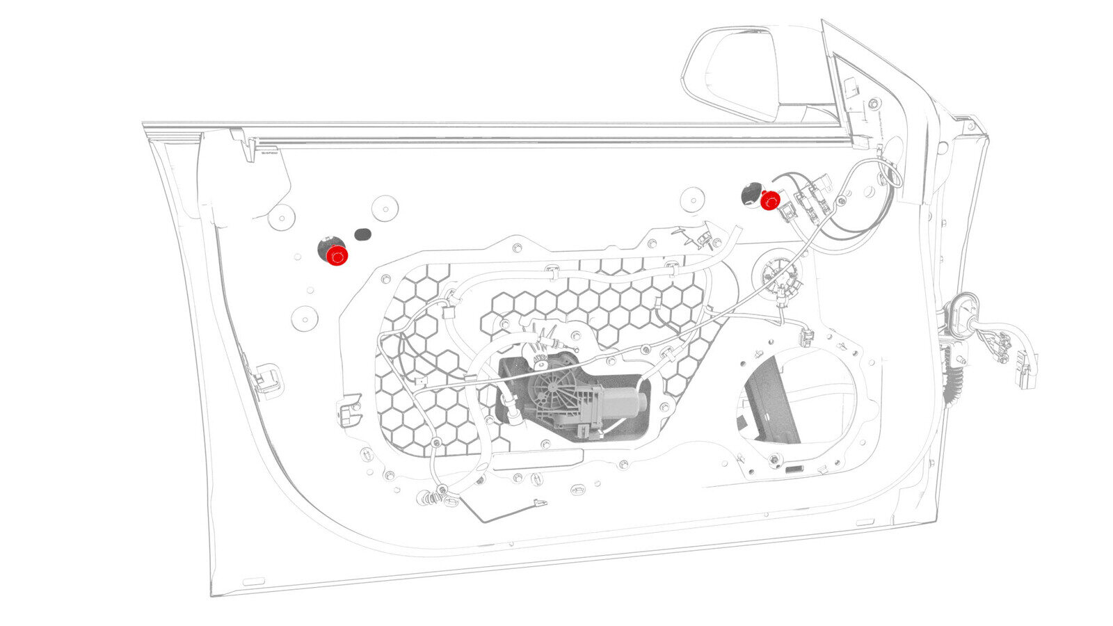 - Remove the LH front door speaker. See Speaker - Front Door - LH (Remove and Replace).