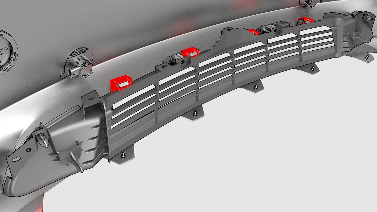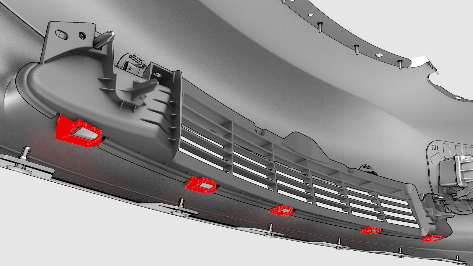 Release the clips that attach the grille to the front fascia, and then remove the grille from the fascia.