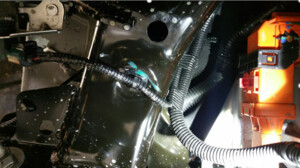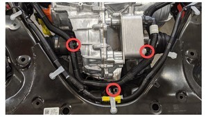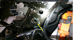 NotePass the new harness through the gap between the subframe and RDU from right to left, and fix the harness on the subframe, taking care not to damage the harness