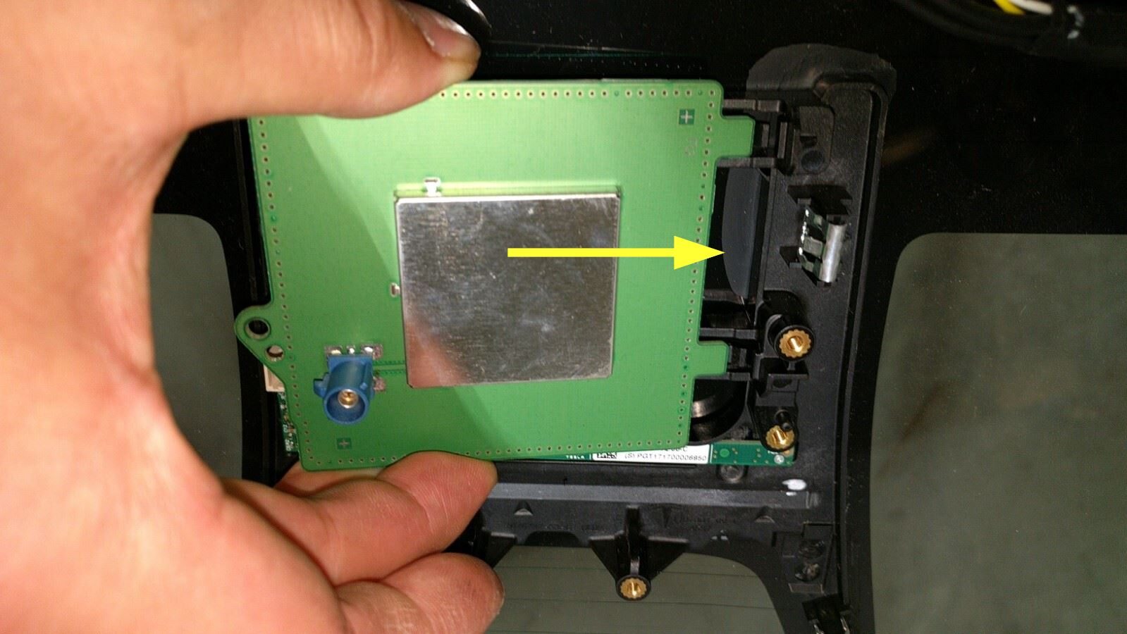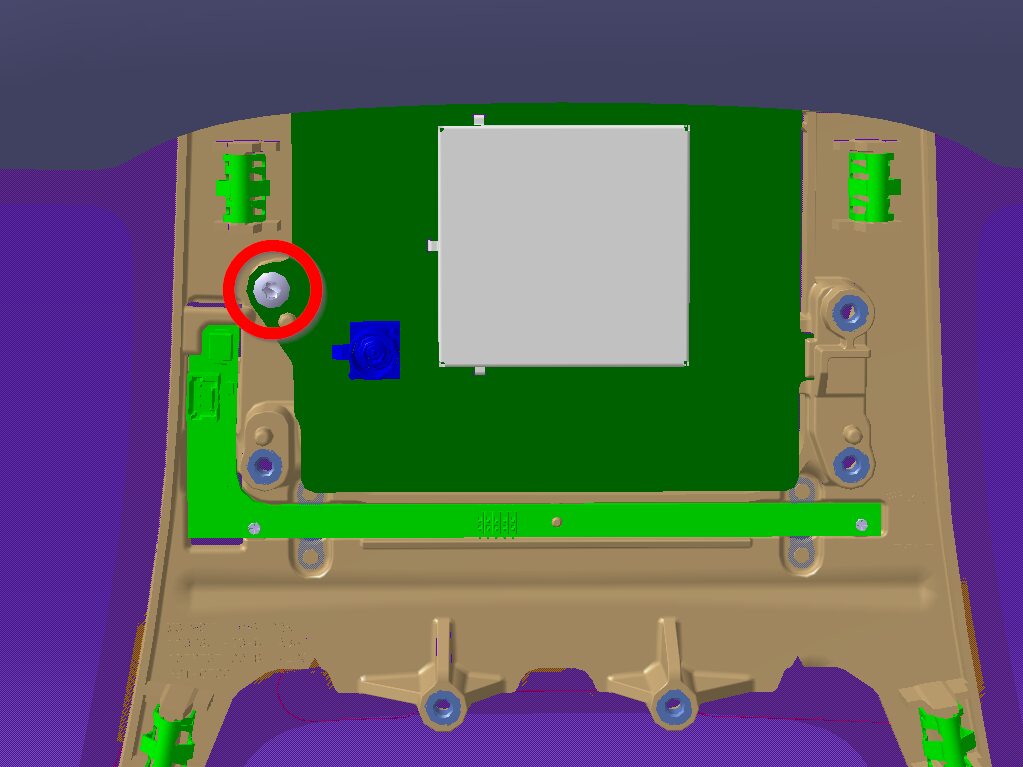 Note1x screw, T10, 1 Nm, 2x tabs, Slide antenna towards RH side to secure tabs