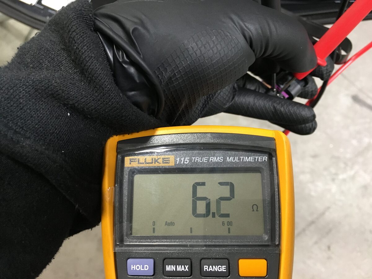 NoteMeasured at ambient temperature, Tolerance 5.6Ω+/-10%, Check from pin 1 to pin 2 on X304, If resistance is outside tolerance then replace windshield