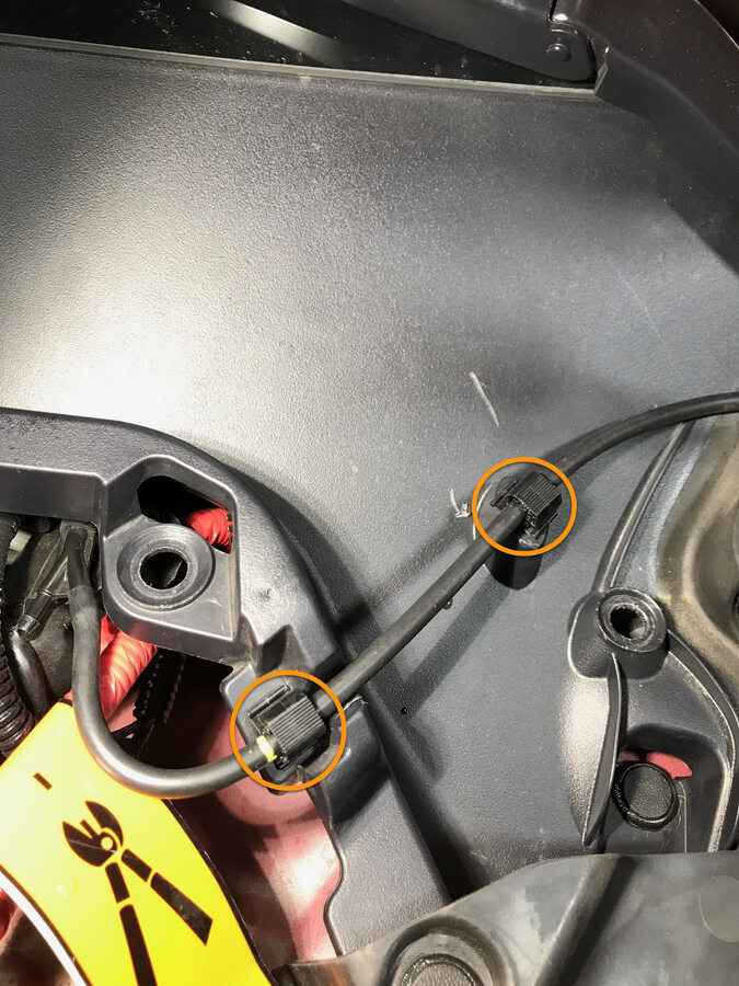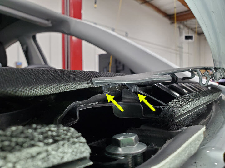 Note4x clips, 1x connector, Frunk safety switch, 3x guide tabs, Align 3x tabs then push downward to secure clips