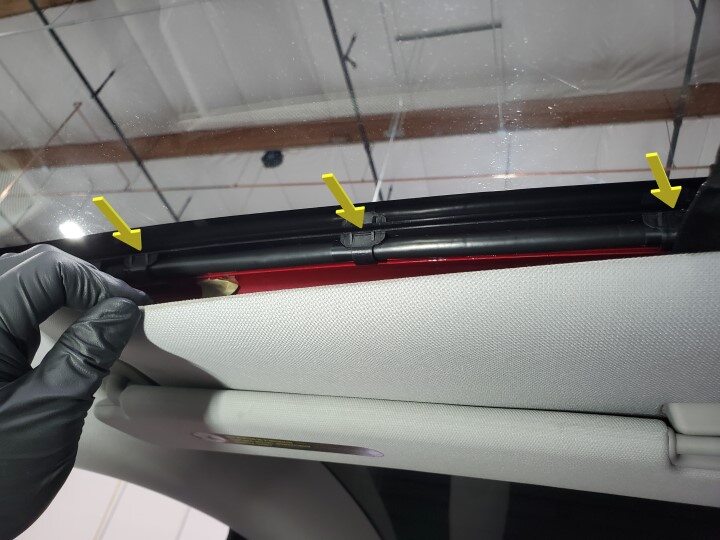NoteLocated above RH visor under headliner, Slide equalizer up against track and carefully tap equalizer to separate from windshield