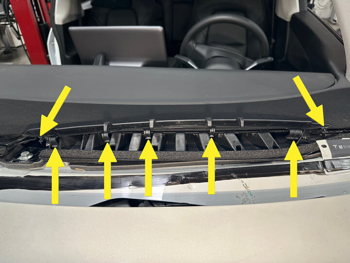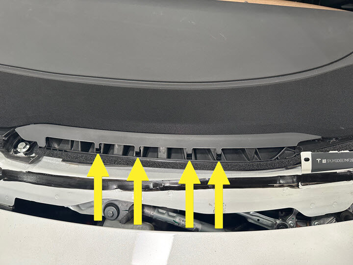 Note12x clips, Make sure frunk assembly is fully seated onto clips, Number of clips may vary on older vehicles