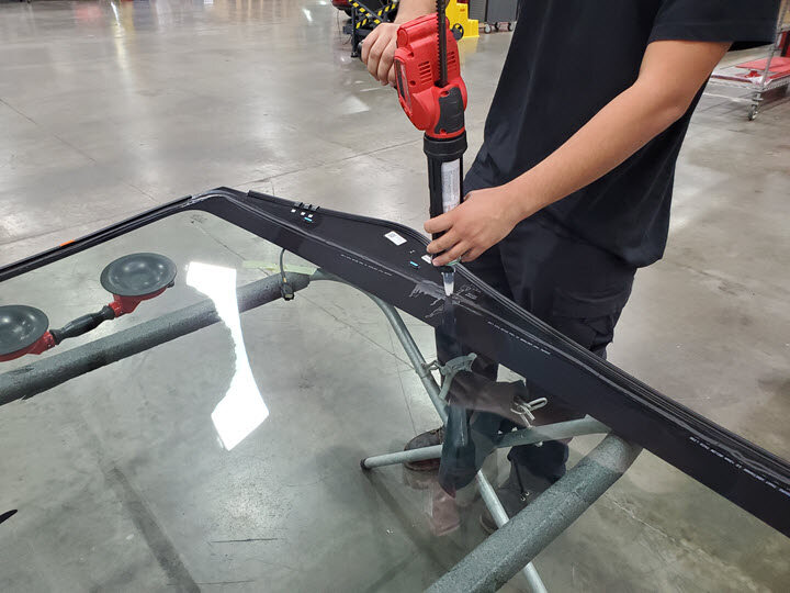 Install windshield onto vehicle