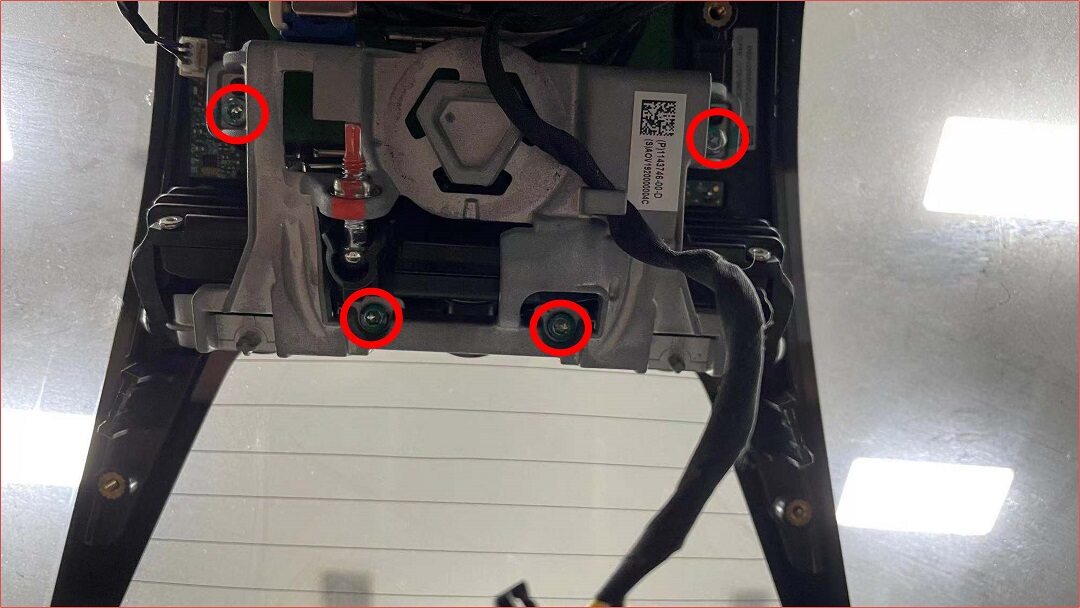 Note1x screw, T10, 1 Nm, 2x tabs, Slide antenna to LH side to release from bracket