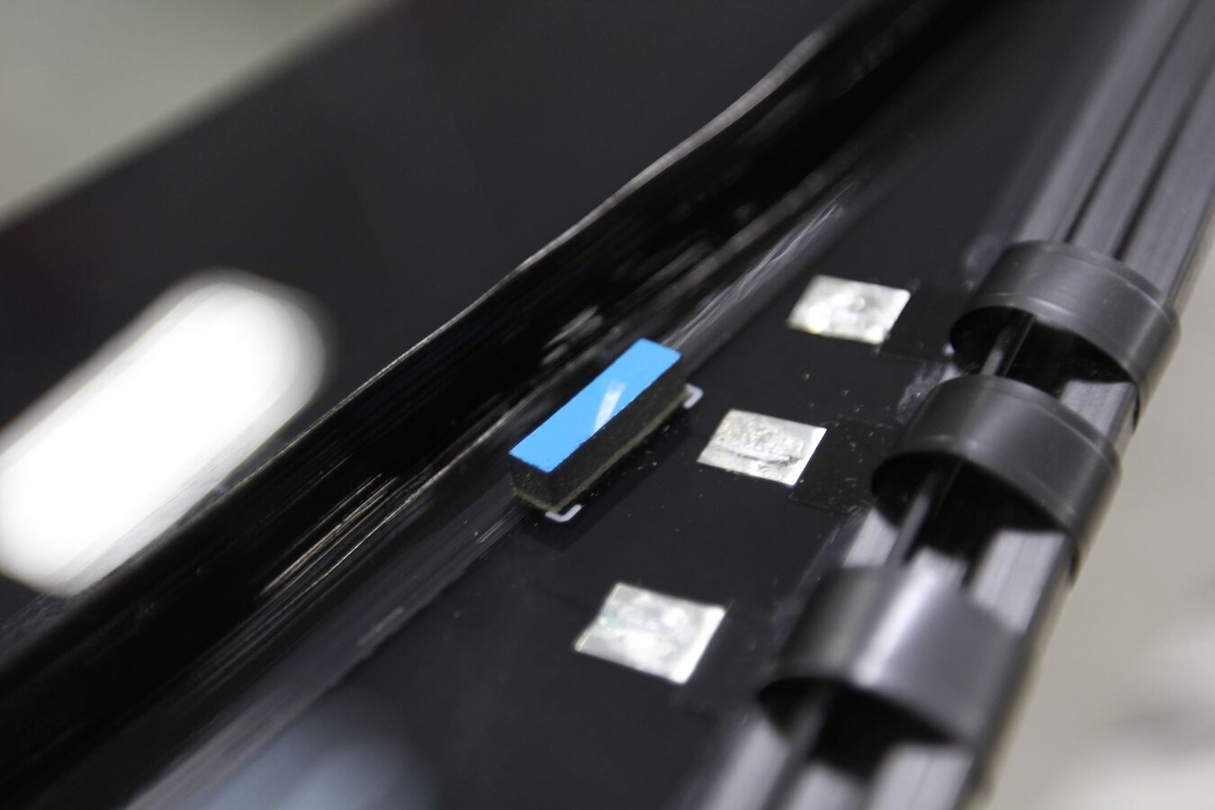 Secure heater harness onto windshield