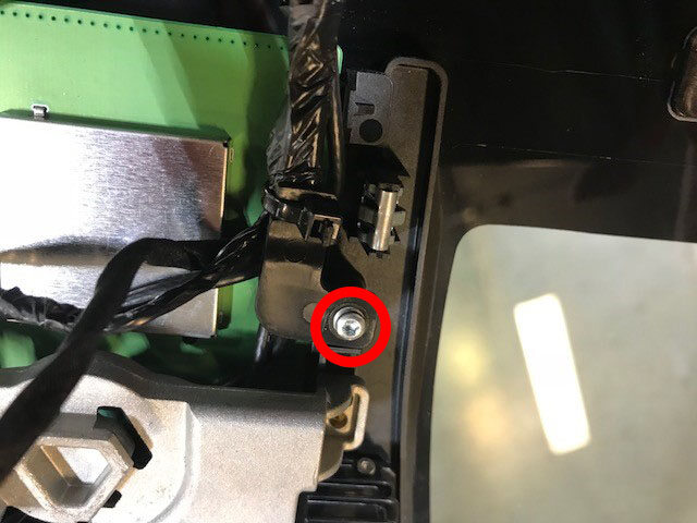 Remove screw securing windshield harness to windshield bracket and move harness aside